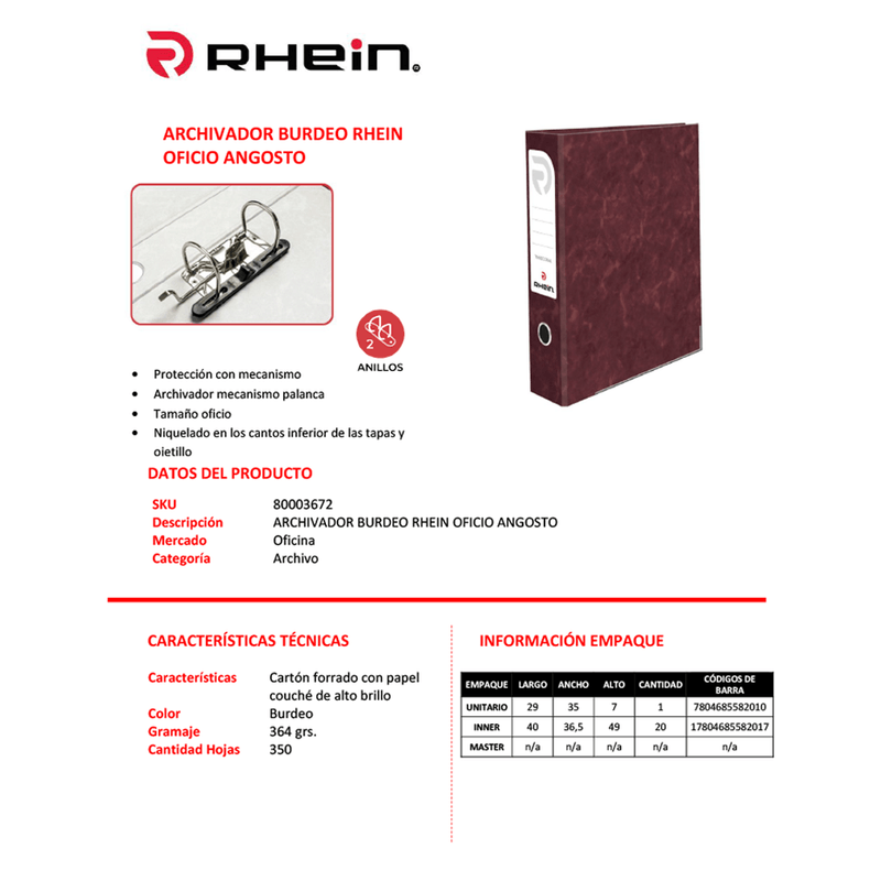 Archivador Oficio Lomo Angosto Burdeo Rhein