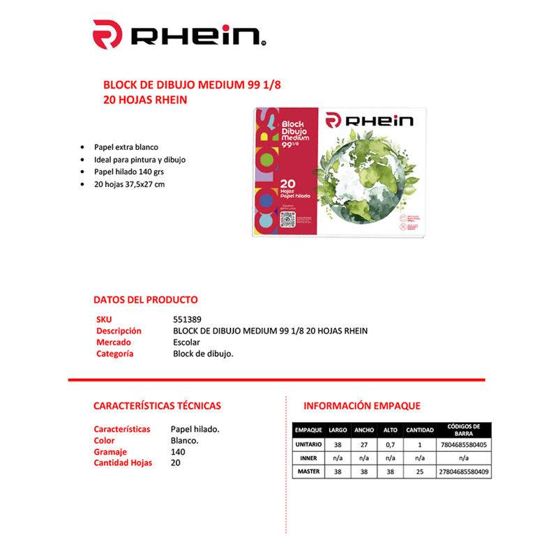 Block Dibujo Medium 99 1/8 20 Hojas Rhein