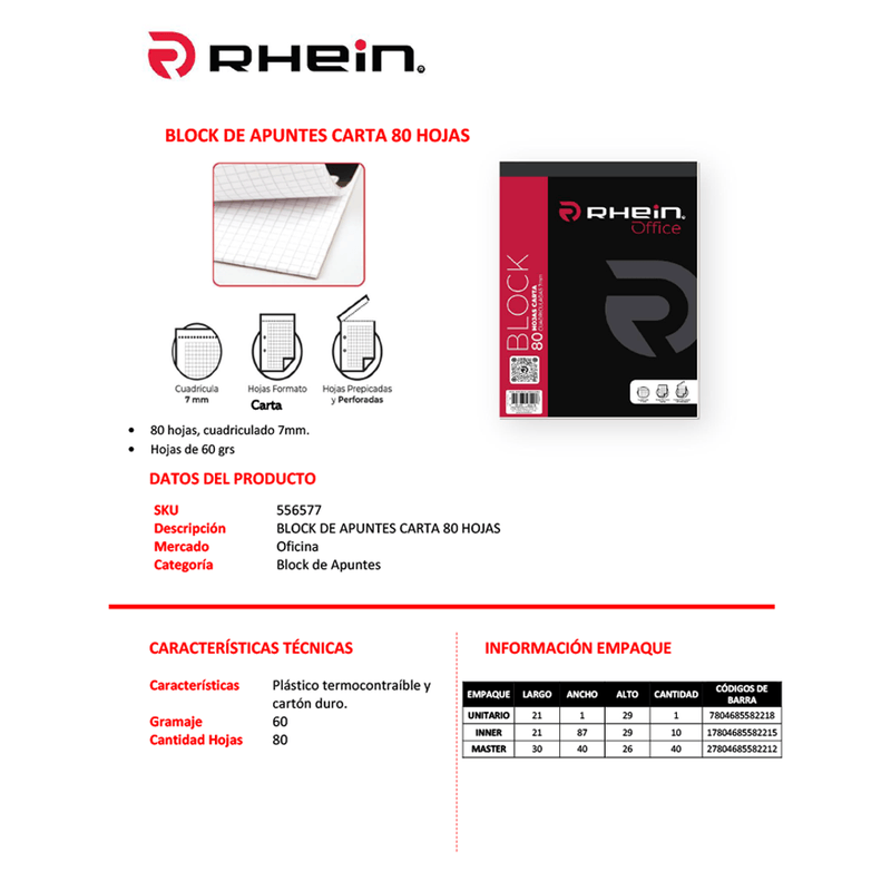 Block Prepicado Perforado Carta 80 Hojas 7 Mm Rhein