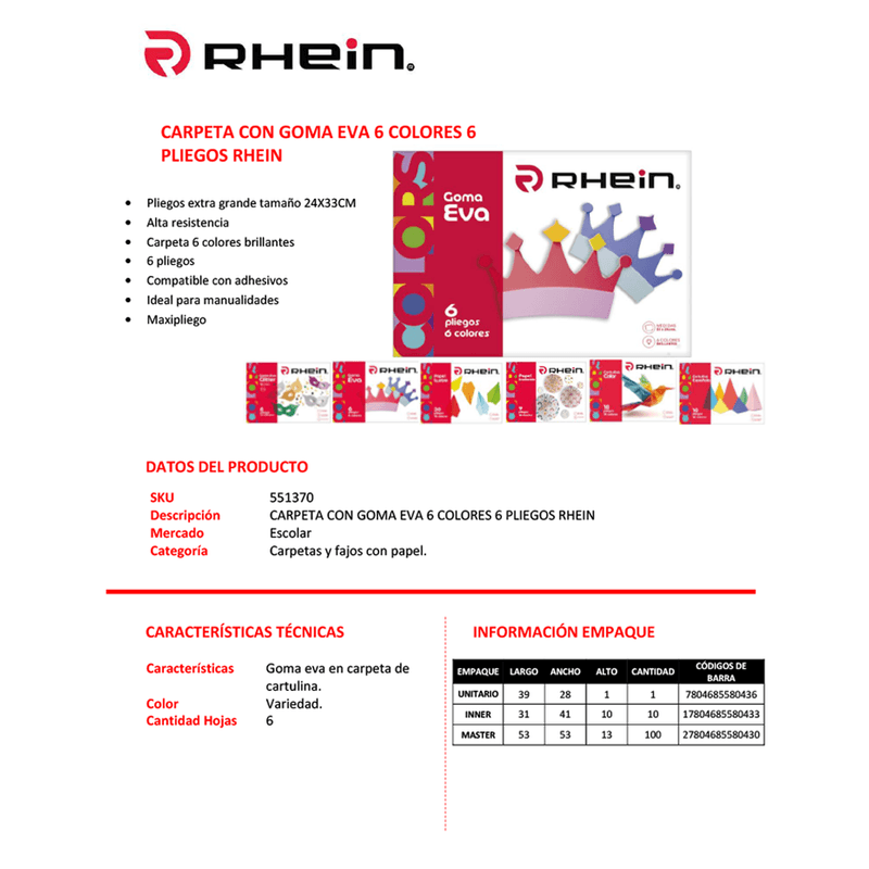 Carpeta Con Goma Eva 6 Colores 6 Laminas Rhein