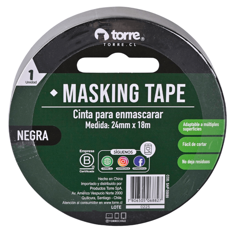 Cinta Enmascarar 24 Mm x 18 Mt Negra Torre