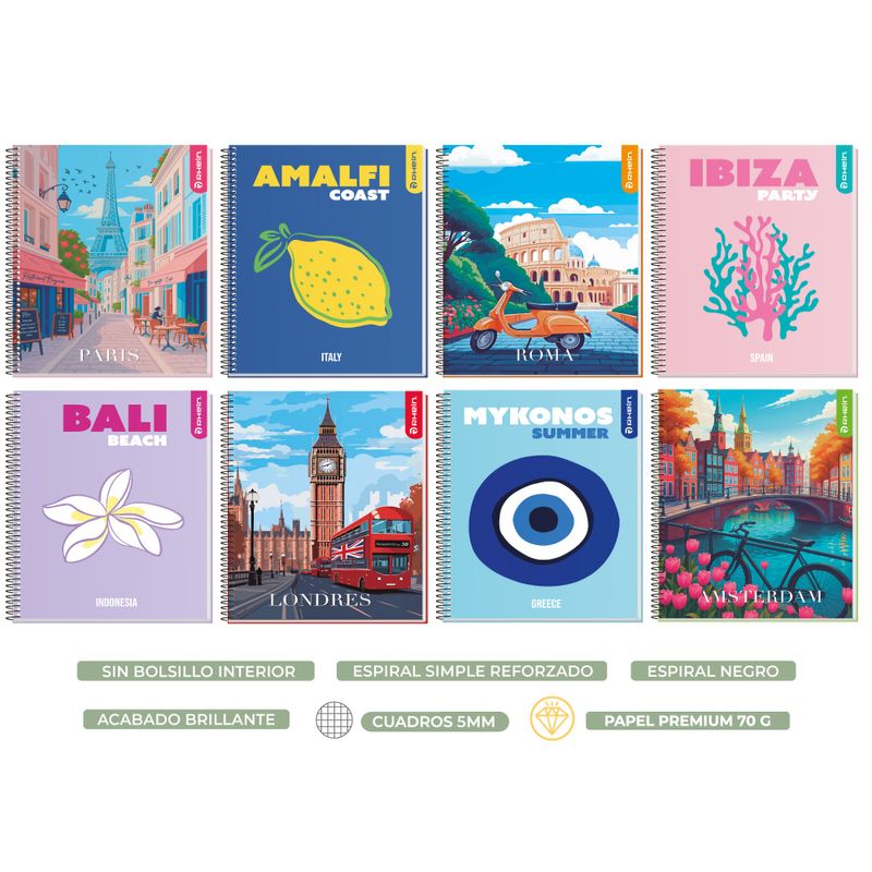 Cuaderno Especial Super Class 1/2 Oficio Travel 5 Mm 120 Hojas Rhein