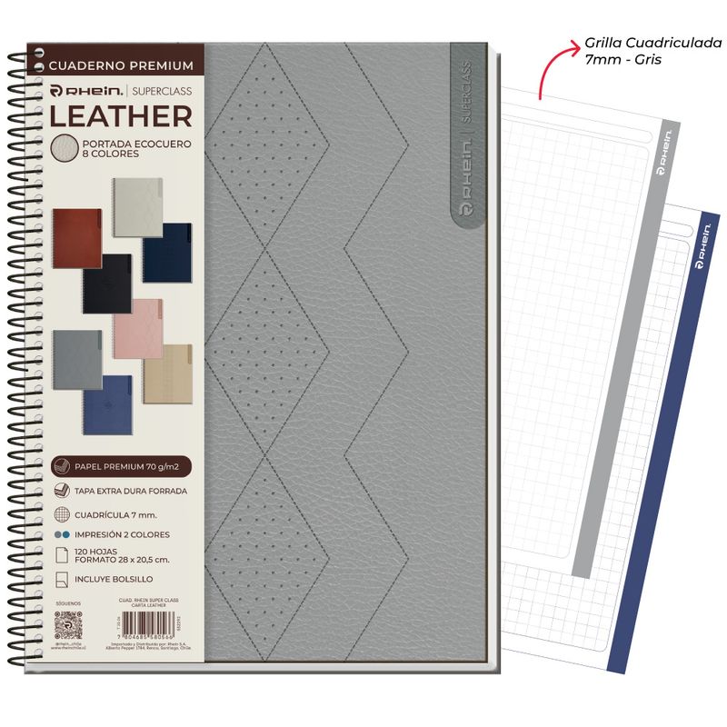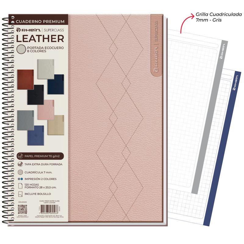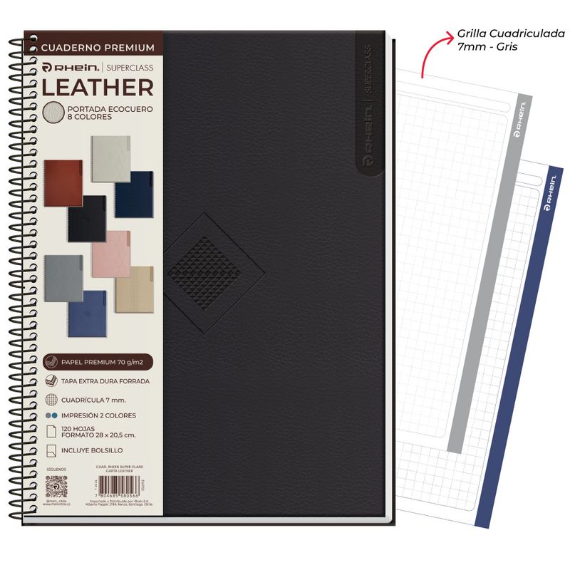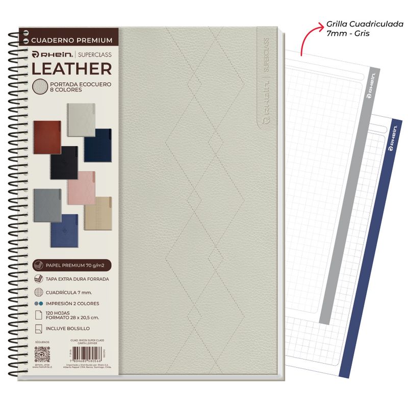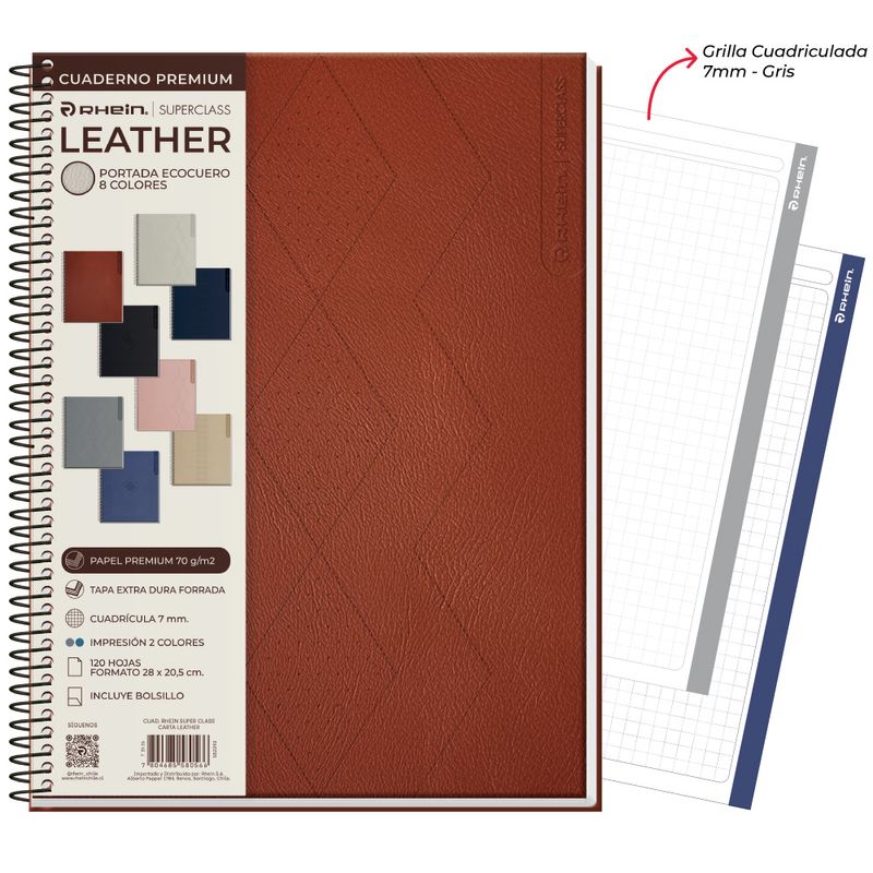 Cuaderno Especial Super Class Carta Leather 120 Hojas 7 Mm Rhein