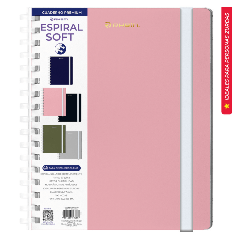 Cuaderno Universitario Premiun Espiral Soft 100 Hojas Cuadros 7Mm Rhein