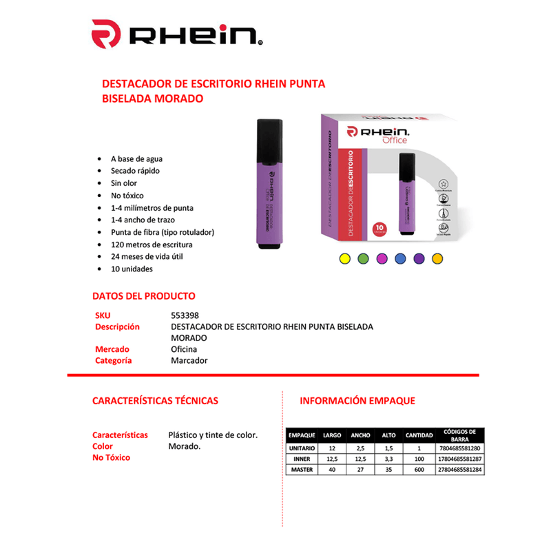 Destacador De Escritorio Punta Biselada Morado Rhein