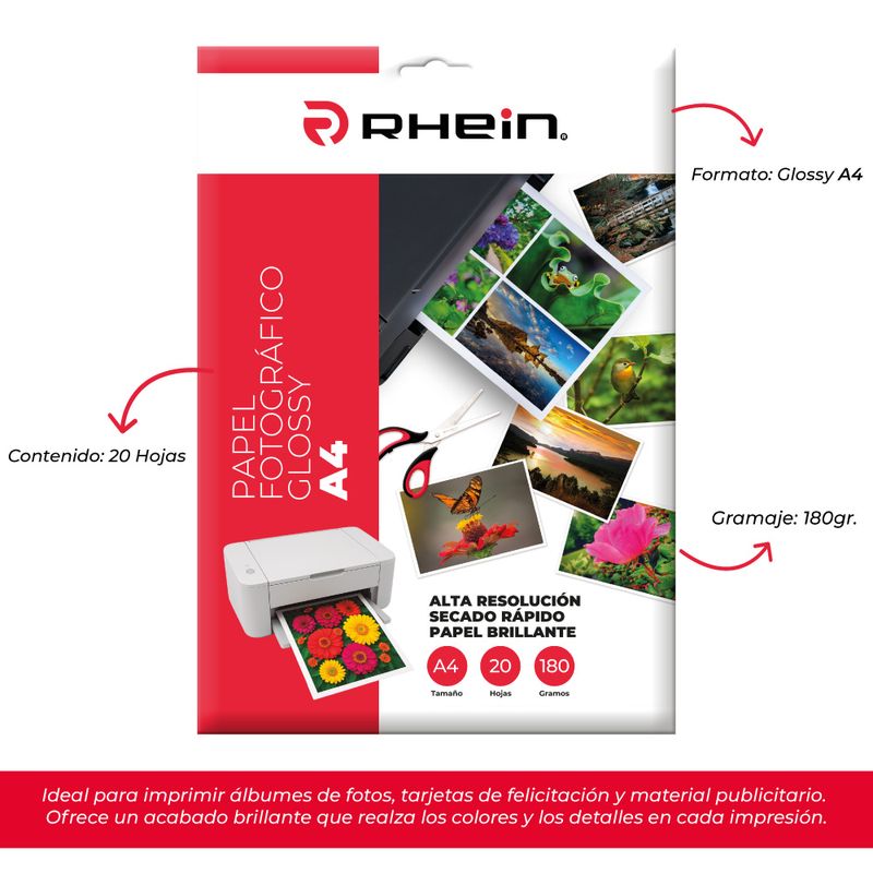 Papel Fotográfico Glossy A4 180 Grs 20 Hojas Rhein