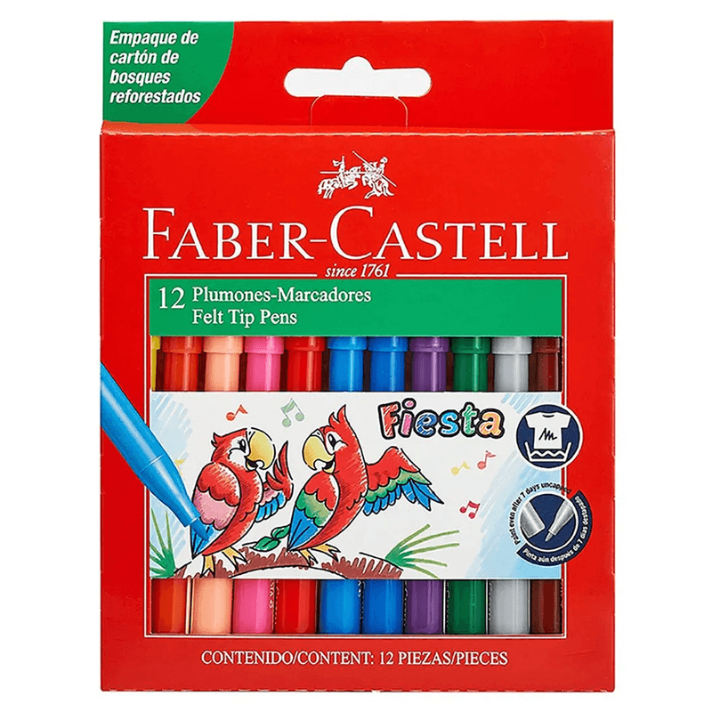 Plumon Escolar Punta Fina 12 Colores Faber Castell