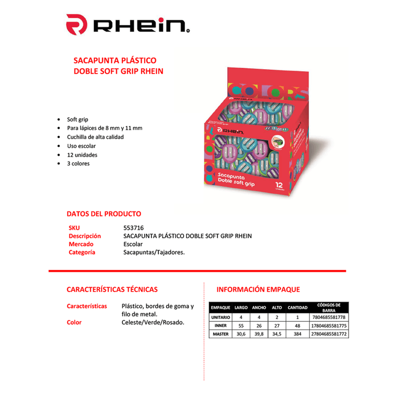 Sacapuntas Plastico Doble Soft Grip Rhein